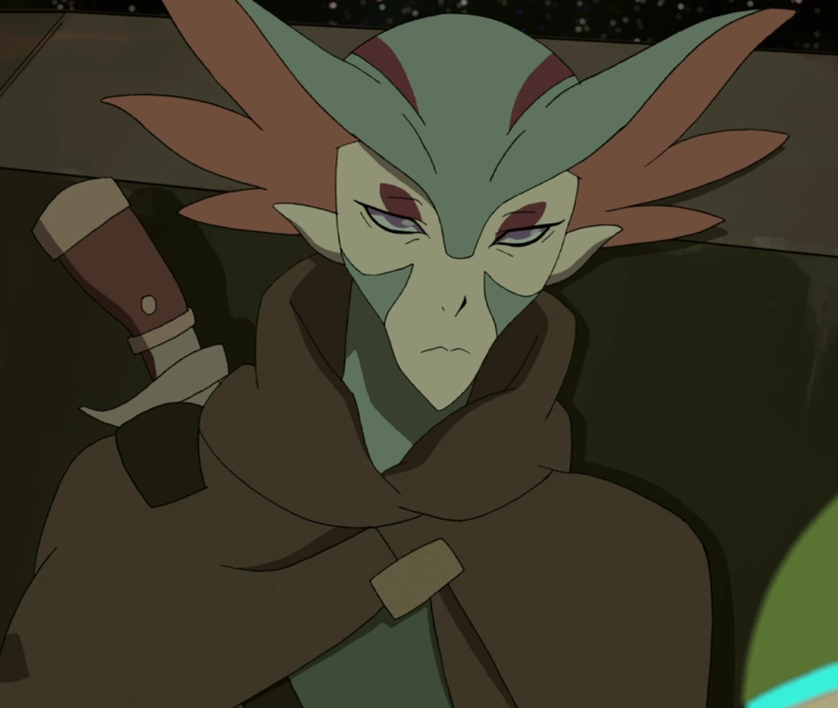 Te-osh is a skilled pilot. As a member of a rebel group constantly under fire from Galra forces, she is proficient at executing evasive manoeuvres and outrunning enemy fighters. Unfortunately, her skill is no match for Galra weapon algorithms, as her supply shuttle is hit while feeling a rebel base under siege.